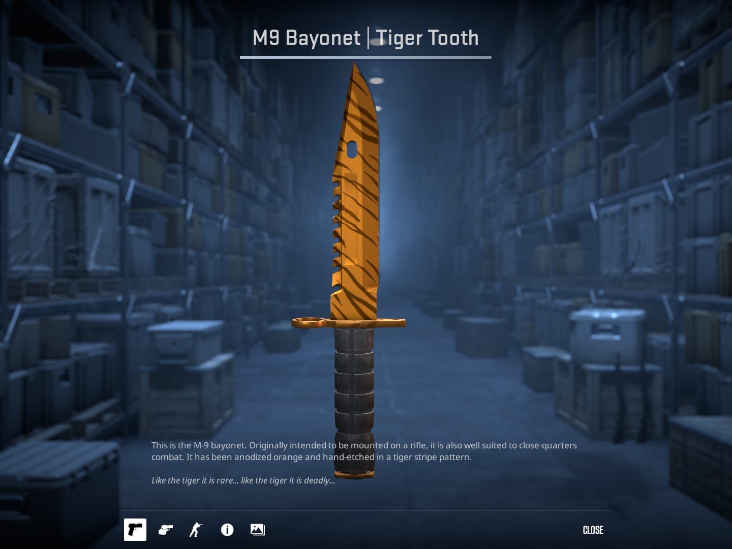 - M9 Bayonet | Tiger Tooth ($1.5K in Factory New)