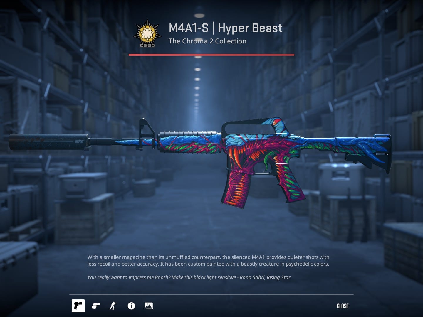 - M4A1-S | Hyper Beast ($100 in Minimal Wear)