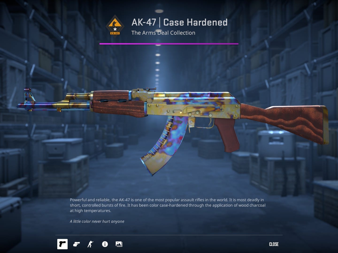 - AK-47 | Case Hardened ($300 in Field-Tested)